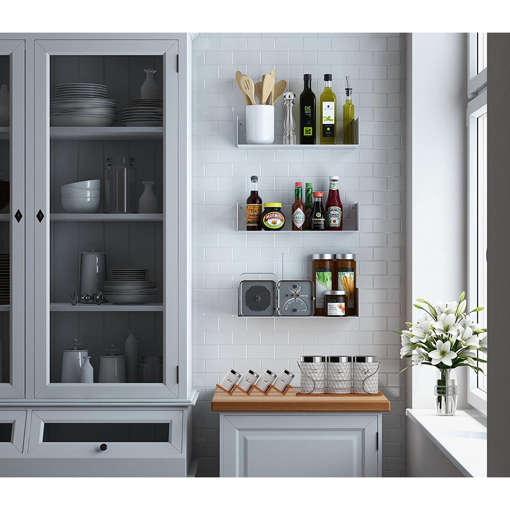 - Kích thước mỗi kệ: Ngang 43cm x Cao 9cm x Sâu 15cm