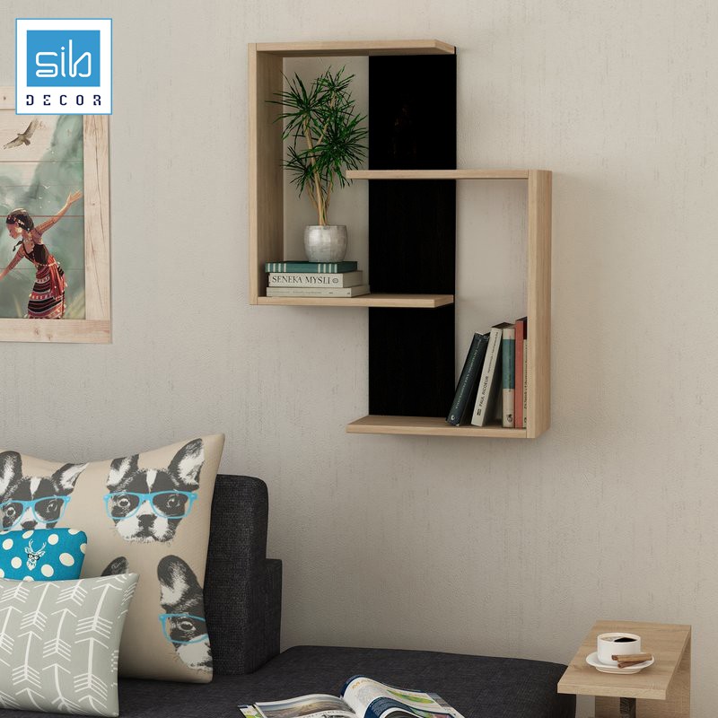 Nhà cửa & Đời sống > Nội thất > Kệ & Giá || Kệ Sách Treo Tường Màu Đen Phối Màu Gỗ Sồi Thornel SIB DECOR (Không gồm đồ trang trí trên kệ)Còn hàng