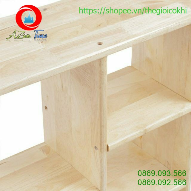 - Chất liệu: Kệ được làm từ gỗ cao su tự nhiên bền đẹp, đã được sấy khô, tẩm chất chống mối mọt và xử lý kỹ trước khi đưa vào chế tạo, quá trình sơn PU tỉ mỉ và đúng kỹ thuật, đảm bảo các tiêu chuẩn nên sản phẩm hoàn thành có bề mặt nhẵn bóng, rất đều và bền màu. Không những đạt về mặt thẩm mỹ mà còn dễ dàng vệ sinh, lau trùi trong quá trình sử dụng