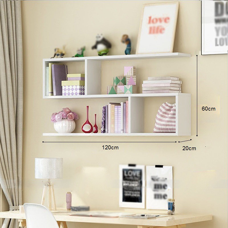 Kệ sách treo tường ziczac 2 tầng Kệ gỗ chữ S chất liệu MDF đa năng Giá Sách Hiện đại