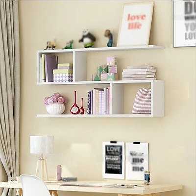 Nhà cửa & Đời sống > Nội thất > Kệ & Giá || Kệ sách treo tường ziczac 2 tầng Kệ gỗ chữ S chất liệu MDF đa năng Giá Sách Hiện đạiCòn hàng