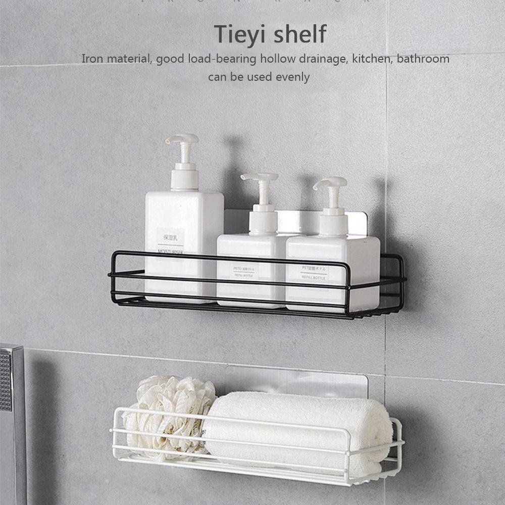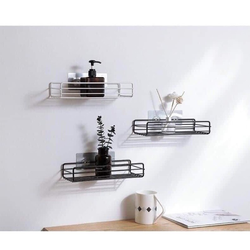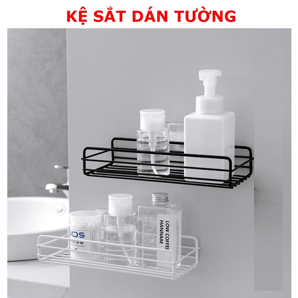 Kệ sắt chữ nhật để đồ nhà tắm, phòng bếp dán tường siêu chắc Kệ để gia vị inox đa năng