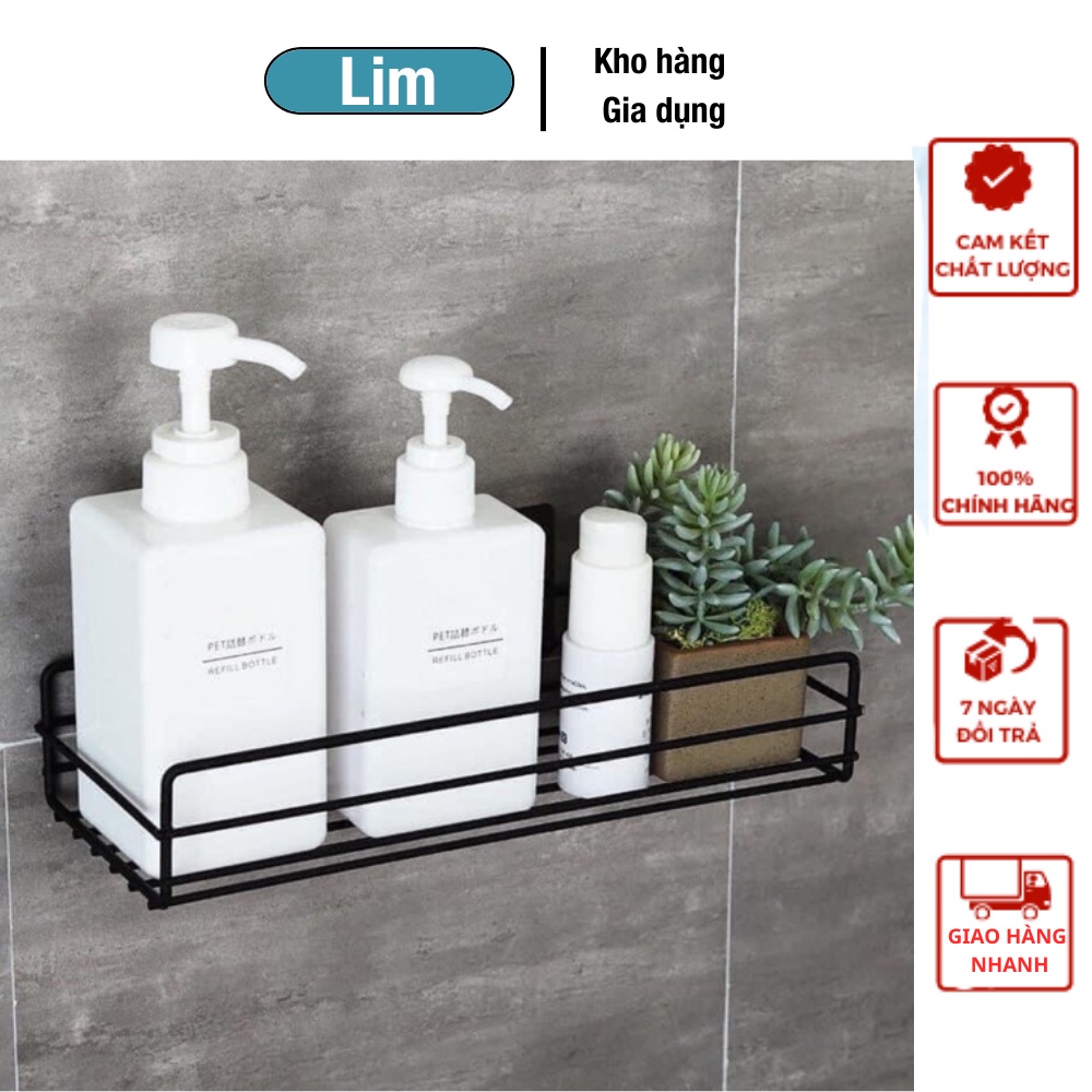 Kệ sắt chữ nhật mỏng để đồ nhà tắm, phòng bếp dán tường siêu chắc bằng móc đôi bạc, không cần khoan vít tường