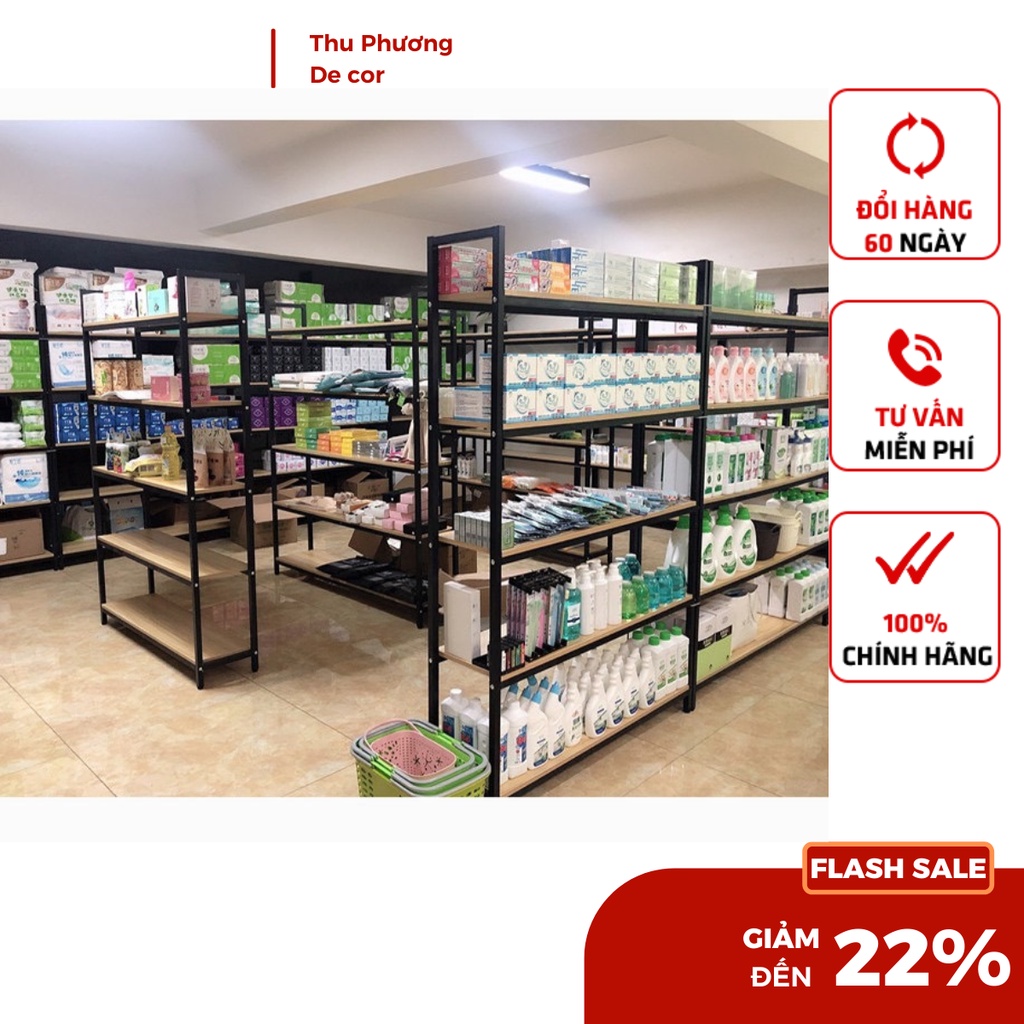 Kệ sắt đa năng 3-4-5 Tầng trưng bày sản phẩm cửa hàng siêu thị, khung sắt sơn tĩnh điện, mặt gỗ melamin chịu tải