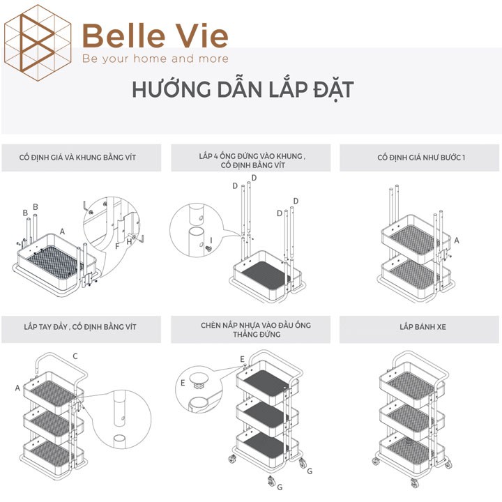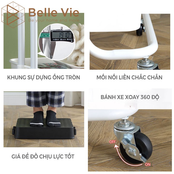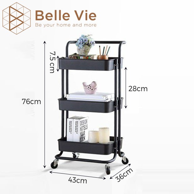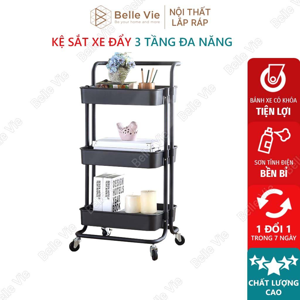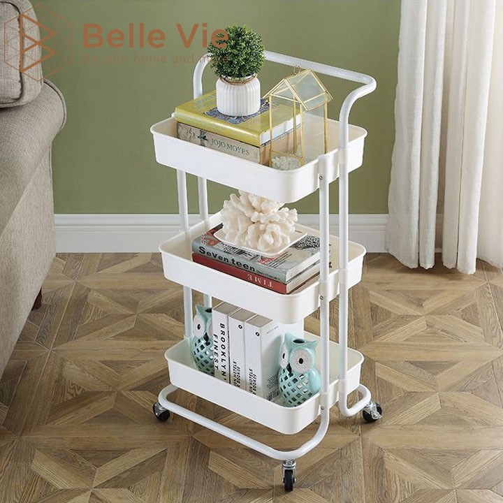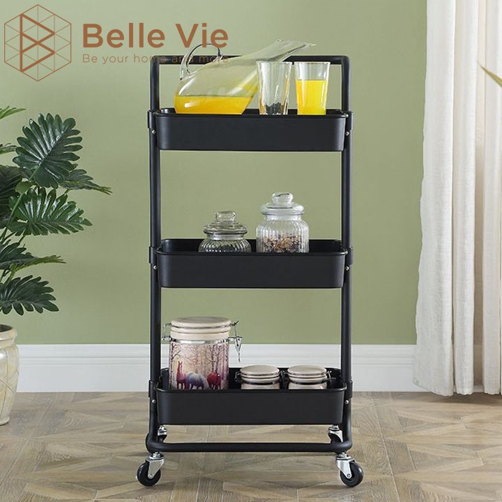 Kệ Sắt Đa Năng 3 BELLEVIE Xe Đẩy Có Bánh Xe Khay Nhựa ABS Có Tay Cầm Tiện LợiTHÔNG SỐ :