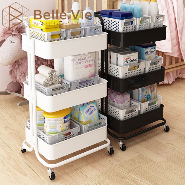 - Kệ thiết kế 3 tầng có bánh xe nên rất tiện lợi, dùng đựng đồ cho em bé hay mỹ phẩm, đồ làm tóc cho mẹ , sách báo