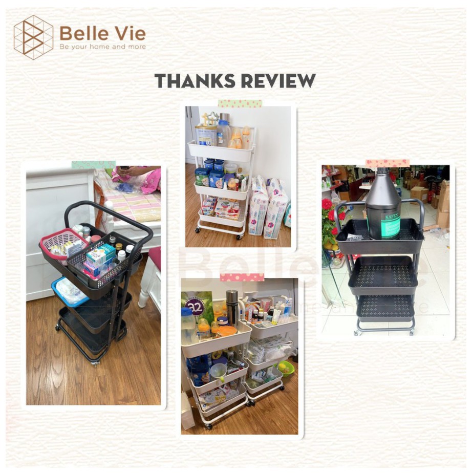 - Kệ thiết kế 3 tầng có bánh xe nên rất tiện lợi, dùng đựng đồ cho em bé hay mỹ phẩm, đồ làm tóc cho mẹ , sách báo