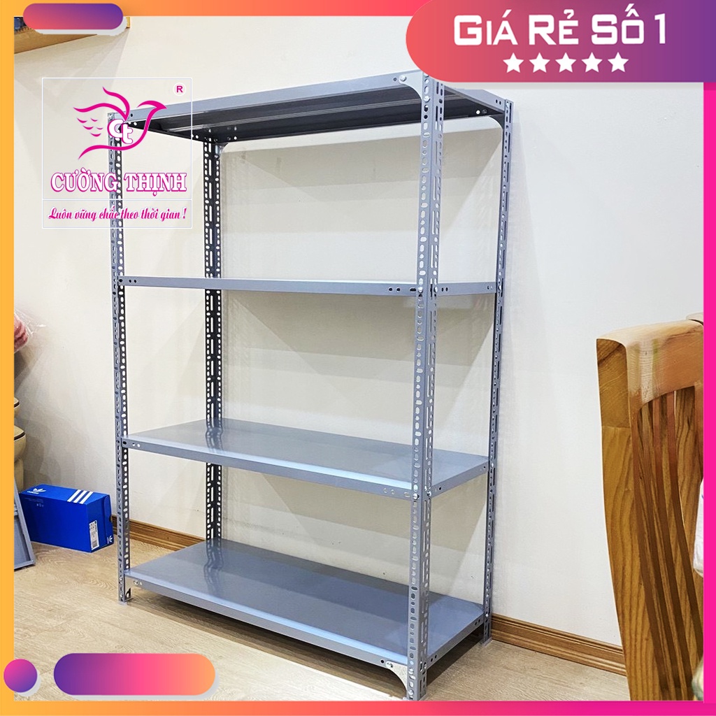 THÔNG TIN SẢM PHẨM : KỆ SẮT CƯỜNG THỊNH- Giá kệ sắt V lỗ đa năng dùng để lắp ghép thành bộ kệ để hàng trong kho, siêu thị, để đồ trong nhà, kệ hồ sơ chứng từ. Giá kệ sắt đã được xử lý bề mặt chống han gỉ, trày xước bằng sơn tĩnh điện cao cấp 3 lớp công nghệ Nhật Bản độ bền cao và chống ẩm mốc, chống oxi hoá.