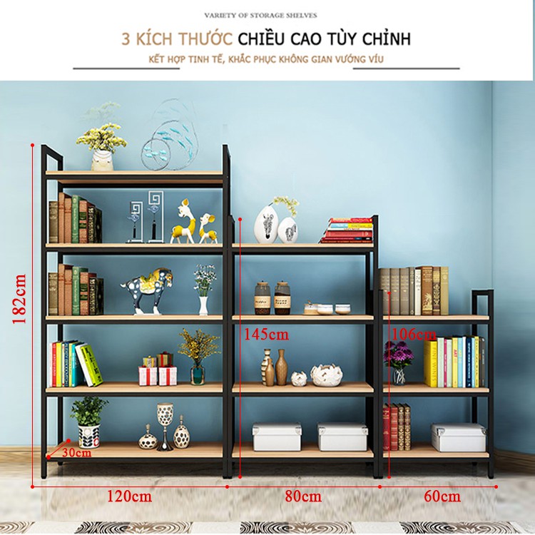 KỆ SẮT ĐỂ HÀNG 5 TẦNG cao 176cm dài 1.5m, 1.2m, 1m, 0.6m sâu 30cm và 40cm- 5 sàn gỗ mdf có khung sắt chịu tải chống cong vênh