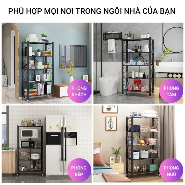 Đựng được mọi loại trang thiết bị đặc biệt như nhà bếp bao gồm có xoong nồi, nồi cơm điện, hay lò nướng lò viba, mỗi tầng có thể đựng được 80kg và kệ có khả năng chịu lực lên đến 400kg.