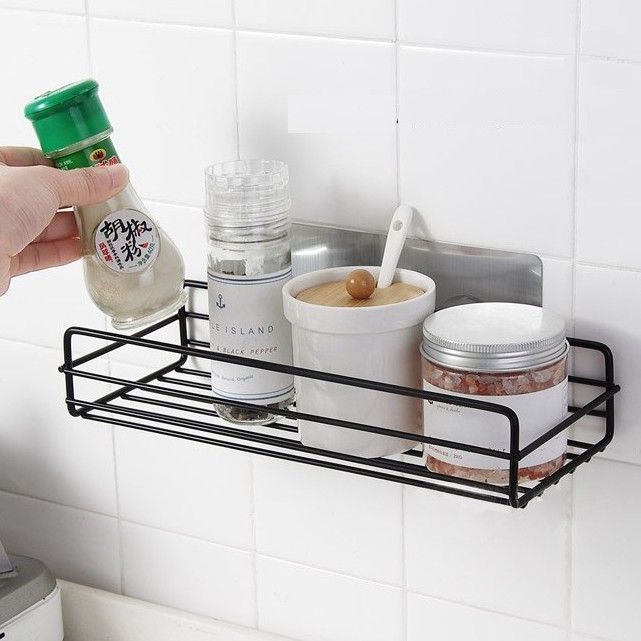 Kệ Sắt Dán Tường Để Đồ Nhà Tắm, Đựng Gia Vị Nhà Bếp/ Kệ Góc Tường Kèm Miếng Dán Siêu Dính Akii Home(MK4)