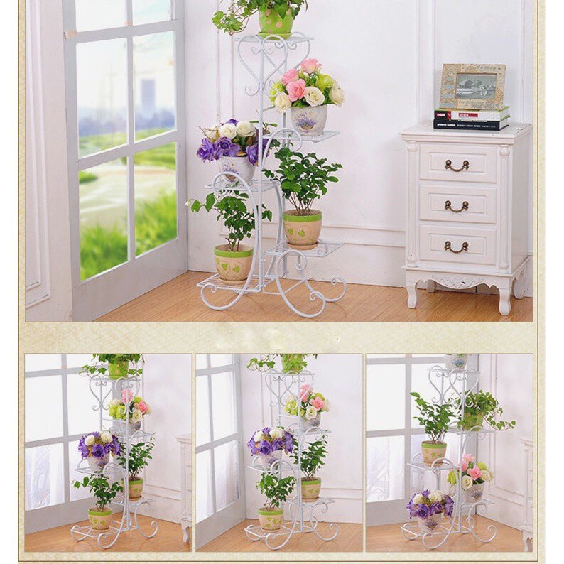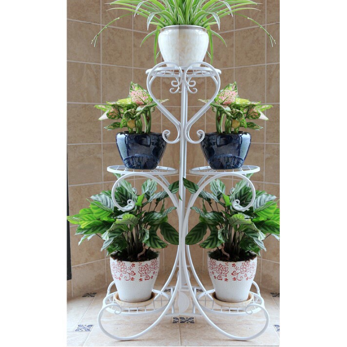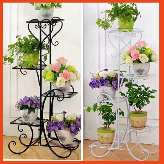 Kệ để chậu hoa 5 tầng được bằng sắt vững chắc, giá đỡ chậu hoa này sẽ làm nổi bật thêm vẻ đẹp của chậu hoa, làm điểm nhấn thu hút cho không gian nhà bạn.Diện tích khiêm tốn nơi ban công hay trong nhà bạn sẽ trở thành khu vườn thu nhỏ thật yên bình với những chậu cây mà bạn yêu thích. Ngôi nhà sẽ trở thành tác phẩm nghệ thuật mới lạ và sinh động hơn khi những chậu cây xinh xinh được đặt trên 1 chiếc giá đỡ bằng sắt nghệ thuật.