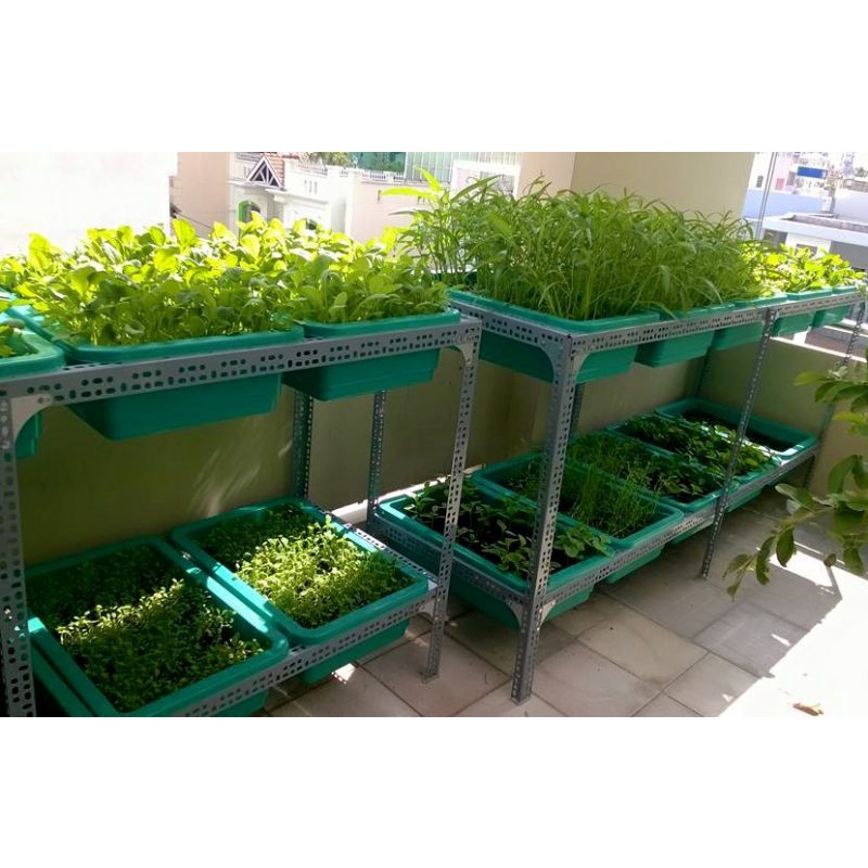 Nhà cửa & Đời sống > Làm vườn > Chậu cây || Kệ sắt trồng rau thông minh 2 tầng dùng cho 6 khay trồng rau kích cỡ 68x43x15 cmCòn hàng