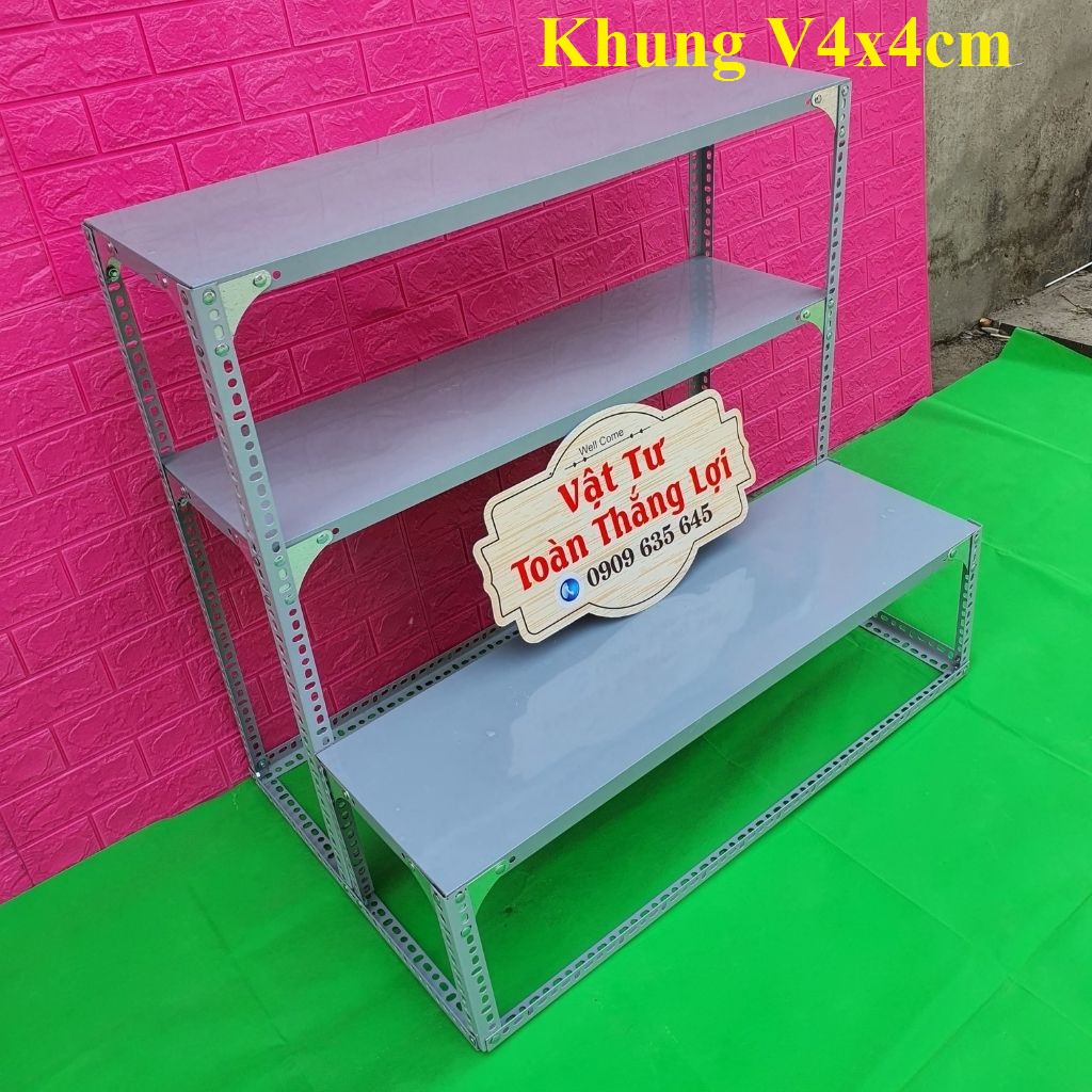 Kệ sắt V lỗ bậc thang ( 2 bậc _ 3 tầng, kệ mâm sắt ) V4x4cm làm khung