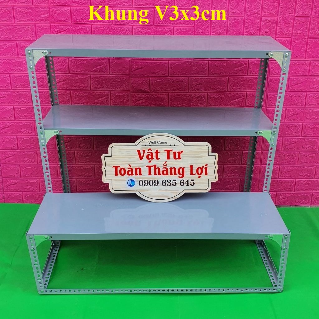 Kệ sắt V lỗ bậc thang ( 2 bậc _ 3 tầng, kệ mâm sắt ) V4x4cm làm khung📌Lắp Ráp : Quý khách tự lắp ráp