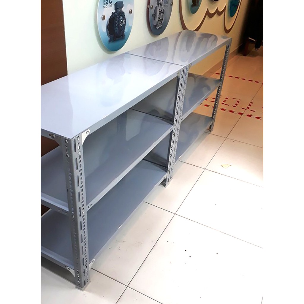 Giá kệ sắt V lỗ đa năng dùng để lắp ghép thành bộ kệ để hàng trong kho, siêu thị, để đồ trong nhà, kệ hồ sơ chứng từ. Giá kệ sắt đã được xử lý bề mặt chống han gỉ, trày xước bằng sơn tĩnh điện cao cấp 3 lớp công nghệ Nhật Bản độ bền cao và chống ẩm mốc, chống oxi hoá. Được tôi luyện qua qua mô hình công nghiệp nên rất cứng và rắn chắc chịu được lực uốn kéo, xoắn lớn hơn bình thườngKích thước: Dài 1m x rộng 0,3m x cao 1m x 3 sàn