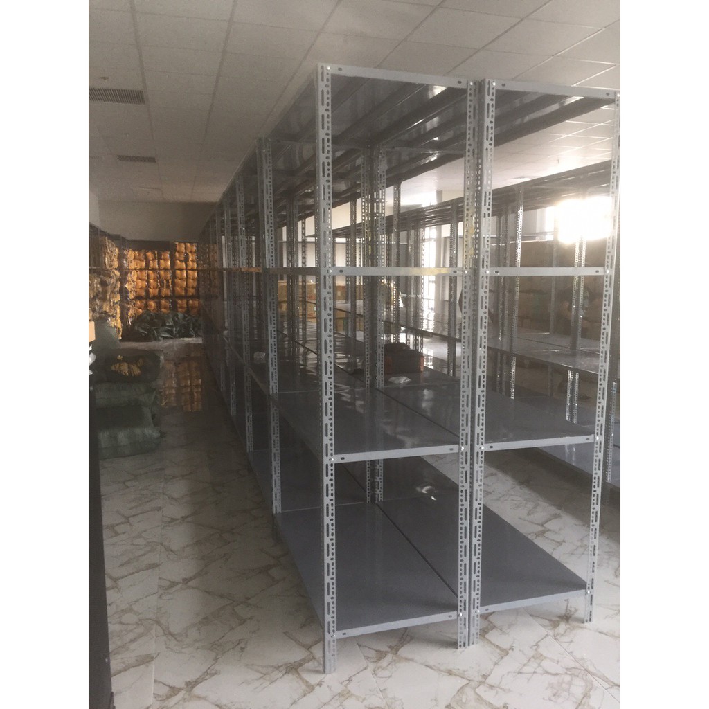 - Khung kệ: được sử dụng cột L có lỗ đục cách đều trên thân có mặt cắt ngang 30x30 có độ dày 1,8mm