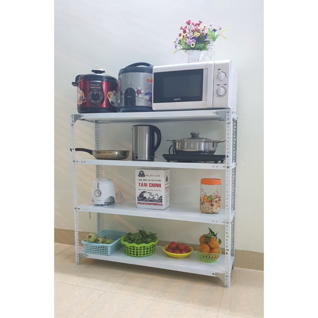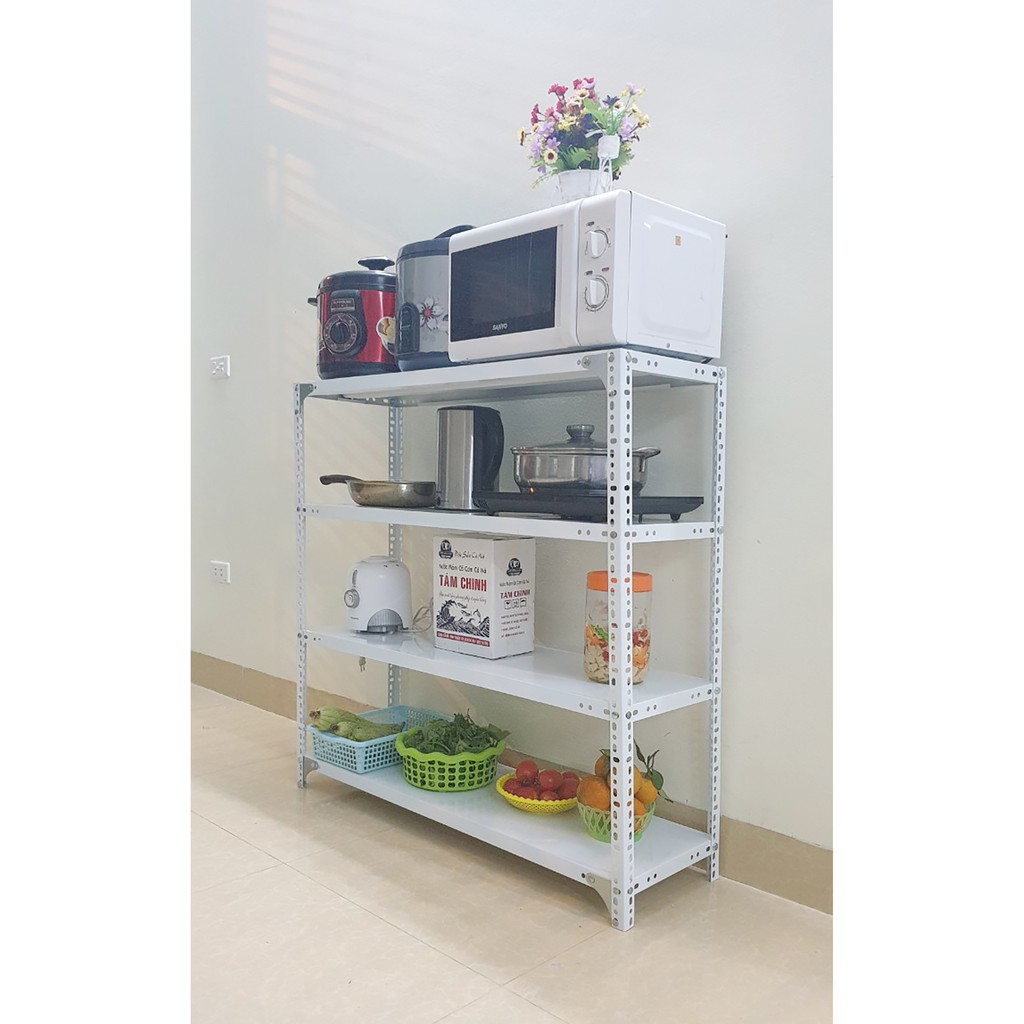Kệ sắt v lỗ đa năng 4 tầng dài 0,8m x rộng 0,3m x cao 1,2m màu TRẮNG
