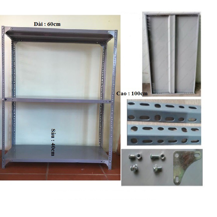 Giới thiệu Kệ sắt v lỗ đa năng đựng đồ 3 tầng dài 0.6m, cao 1m, rộng 0,4m