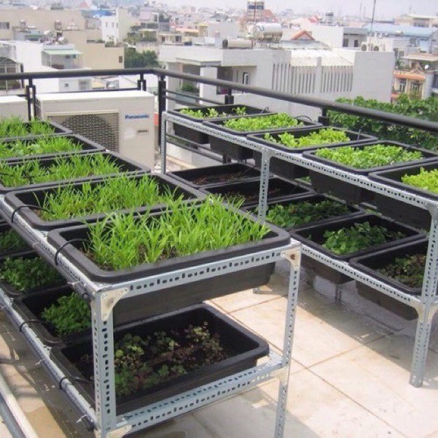 - Khung sắt đa năng dùng làm giàn trồng rau sạch để đỡ khay nhựa, thùng xốp trồng rau sạch