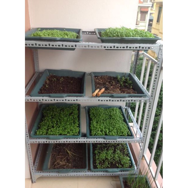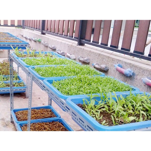 Giới thiệu Kệ sắt v lỗ trồng rau thông minh 1,2,3 tầng, dùng 1,2,4,6,9 khay kích cỡ 67x43x15 cm