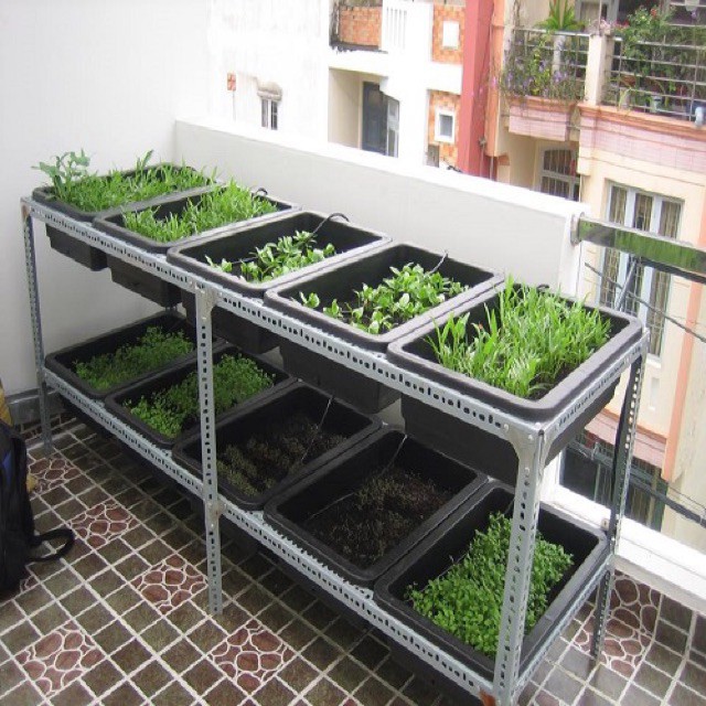 Kệ sắt v lỗ trồng rau thông minh 1,2,3 tầng, 2,6,9 khay trồng rau kích cỡ 67x43x15 cm
