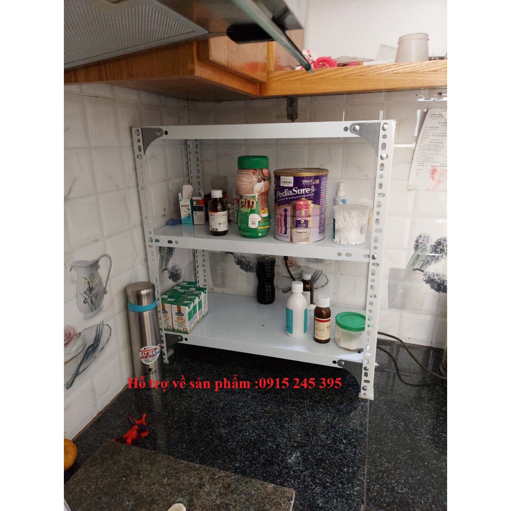 Kệ sắt v lỗ trưng bày lắp ghép đa năng, kệ kho hàng gia dụng 3 tầng . KT: Dài 60cm,80cm,100cm,120cm. Rộng 30cm.Cao 60cm