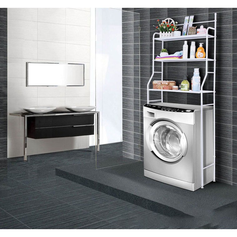 🍀 Kệ máy giặt, kệ để đồ 3 tầng phòng vệ sinh gắn sau máy giặt tiết kiệm không gian sẽ giúp cho các bạn tận dụng không gian phía trên để sắp đặt các đồ dùng rất tiện ích và tạo nên không gian sang trọng và đẹp mắt cho nhà tắm phòng vệ sinh.