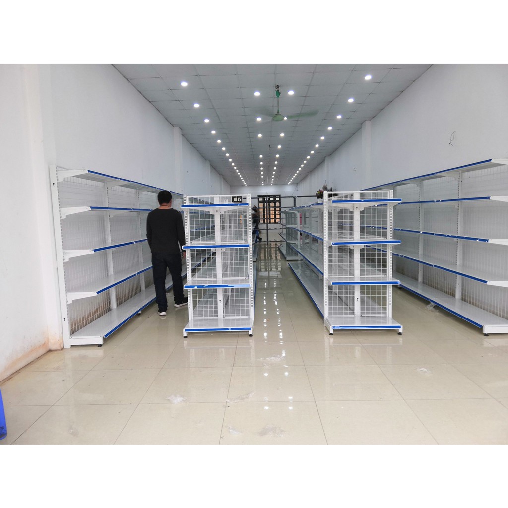 Nhà cửa & Đời sống > Nội thất > Kệ & Giá || Kệ siêu thị đơn để áp tường , để đầu dãy . Kích thước : Dài 70cm, Rộng 40cm, cao 150cm gồm 4 tầngCòn hàng