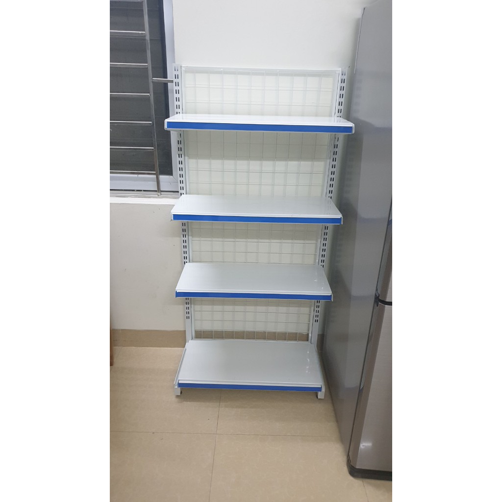 Kệ siêu thị đơn để áp tường , để đầu dãy . Kích thước : Dài 70cm, Rộng 40cm, cao 150cm gồm 4 tầng