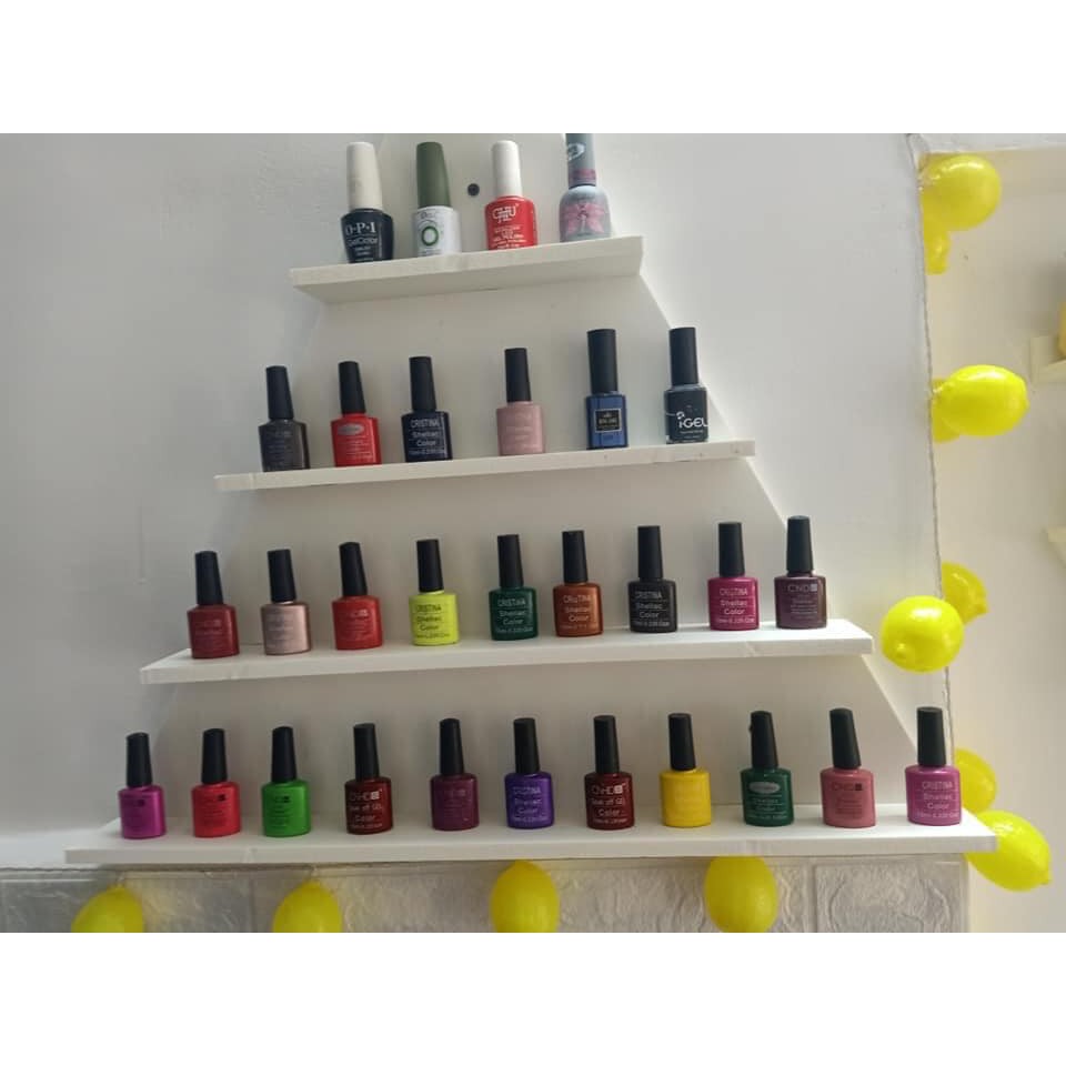 Sản phẩm: Kệ Sơn Nail hình tam giácChất liệu: PVC Foam ; Gỗ nhựa composite
