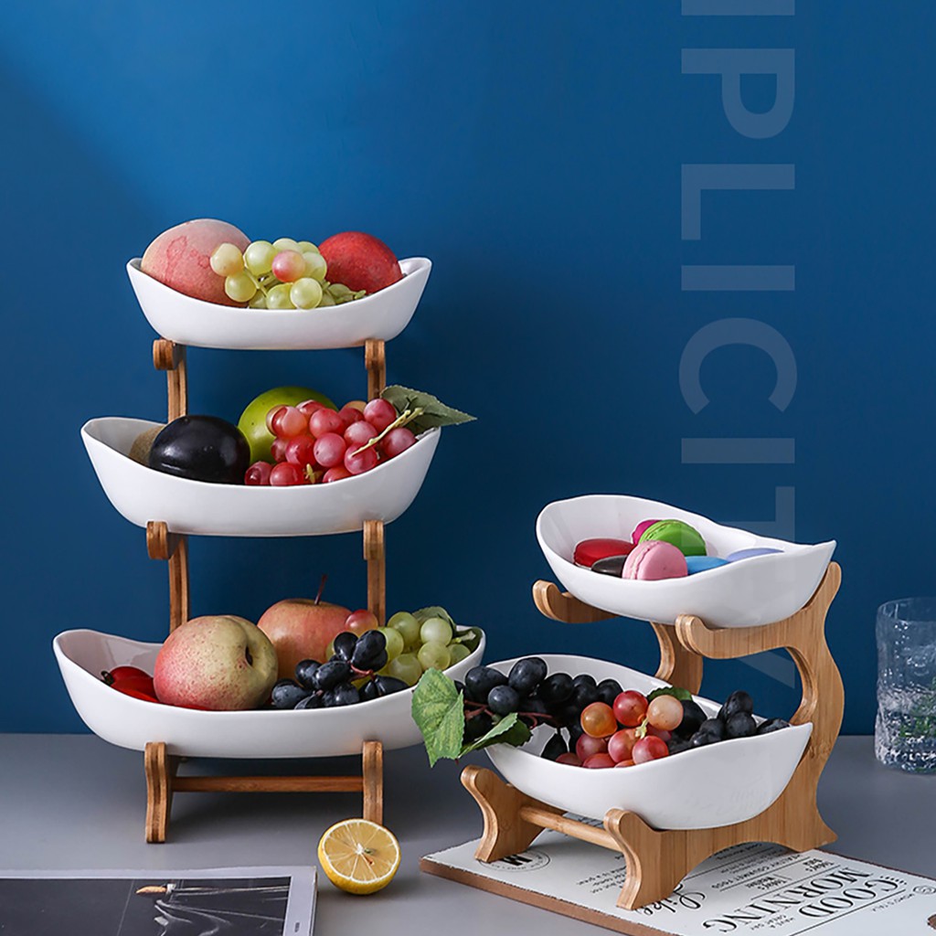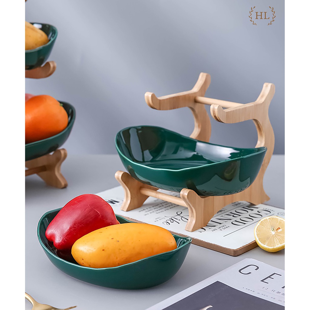 Nhà cửa & Đời sống > Bộ đồ bàn ăn > Dĩa || Kệ Sứ 2 Tầng Bắc Âu - Home Decor | Đĩa sứ bầu dục kèm kệ gỗ tre 2 tầng phong cách VINTAGECòn hàng