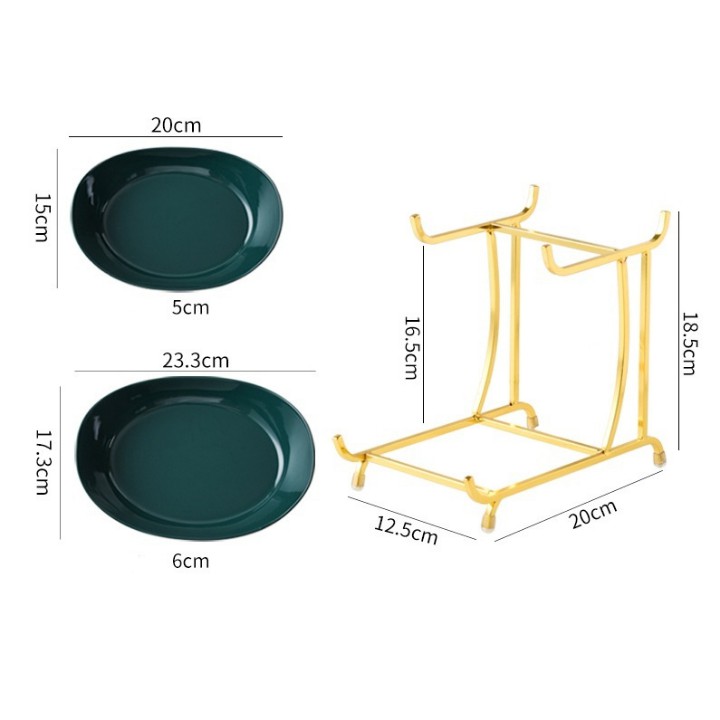 ĐĨA SỨ HAI TẦNG KỆ INOX MẠ VÀNG KHÔNG RỈ* Thông tin sản phẩm: