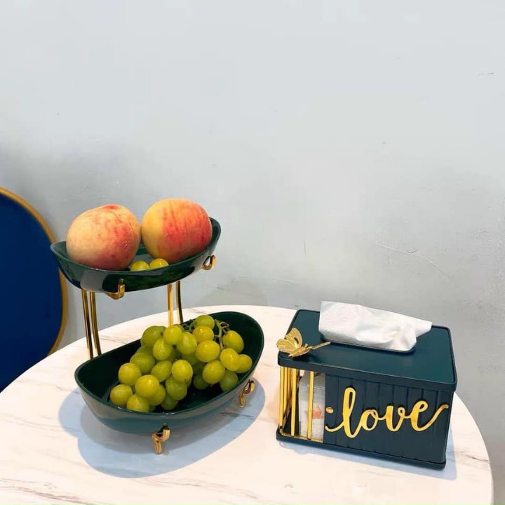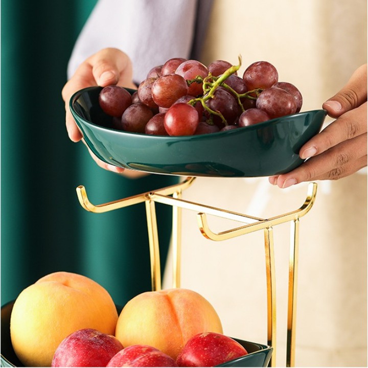 Nhà cửa & Đời sống > Bộ đồ bàn ăn > Dĩa || Kệ sứ hai tầng màu trắng xanh ngọc kệ inox mạ vàng Cao Cấp đựng hoa quả sa lát dễ vệ sinh vận chuyển [ RẺ VÔ ĐỊCH ]Còn hàng