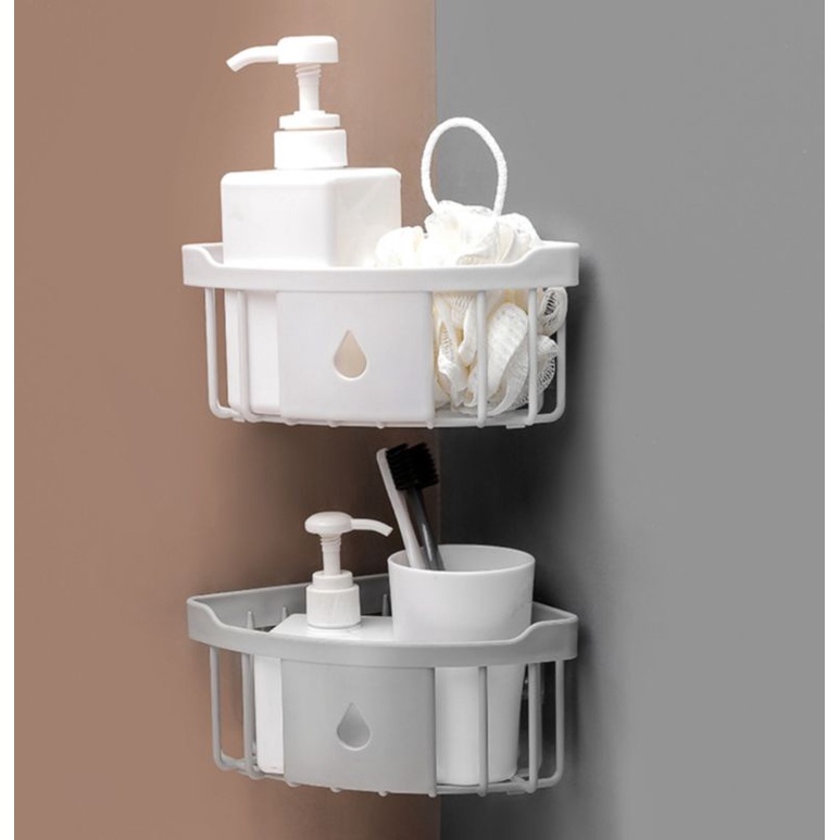 Kệ tam giác dán góc tường thiết kế hình tam giác giúp tận dụng tiết kiệm không gian phòng tắm.