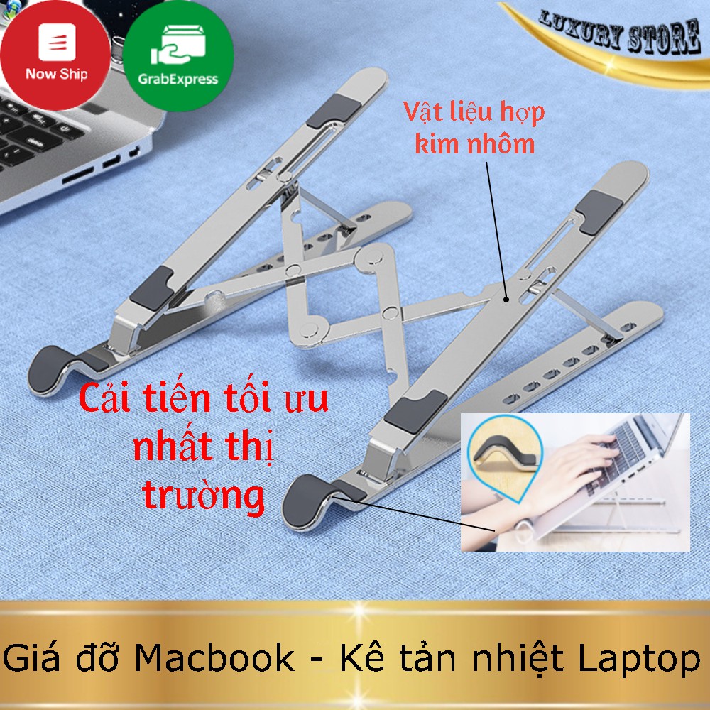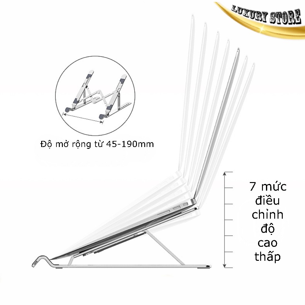 Giá đỡ Laptop nhôm - kê Macbook gấp gọn để bàn giúp tản nhiệt laptop hiệu quả 7 mức điều chỉnh độ cao