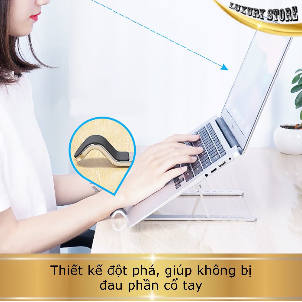 Giới thiệu Giá đỡ Laptop nhôm - kê Macbook gấp gọn để bàn giúp tản nhiệt laptop hiệu quả 7 mức điều chỉnh độ cao