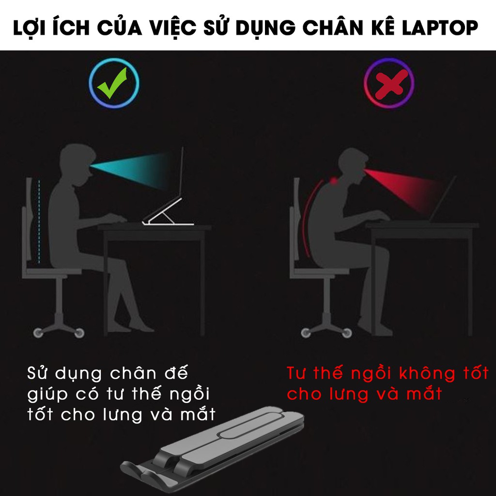 ☑ Kệ laptop sẽ giúp tạo tư thế nhìn thoải mái cho mắt người sử dụng, tránh việc bị gù lưng khi ngồi làm việc với máy tính lâu
