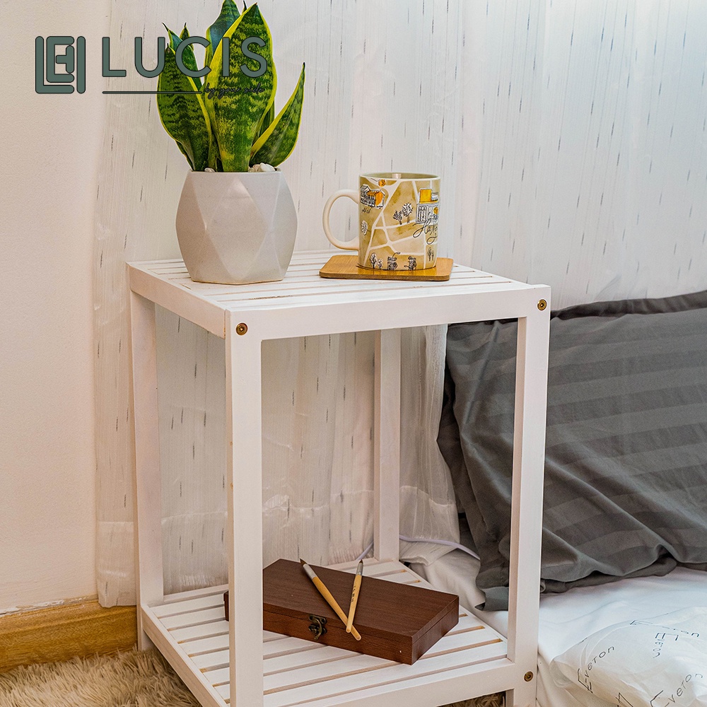 Kệ táp đầu giường 2 tầng LUCIS gỗ thông nhập khẩu bảo hành 12 tháng - Kệ trang trí phòng ngủ