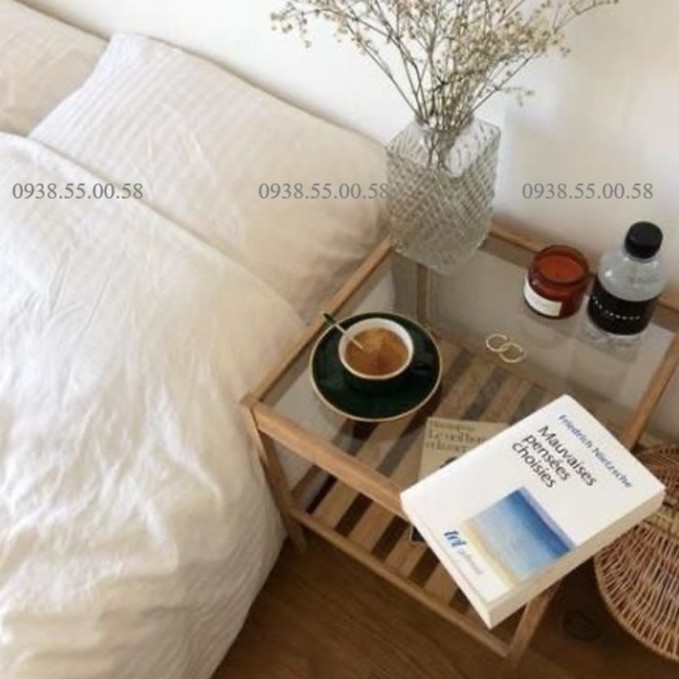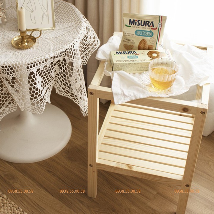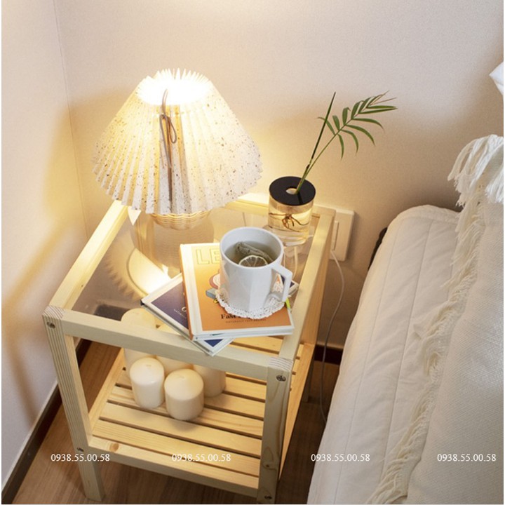 Kệ táp đầu giường mặt kính 2 tầng ⚡ GIÁ XƯỞNG ⚡ gỗ Thông tự nhiên, bền đẹp