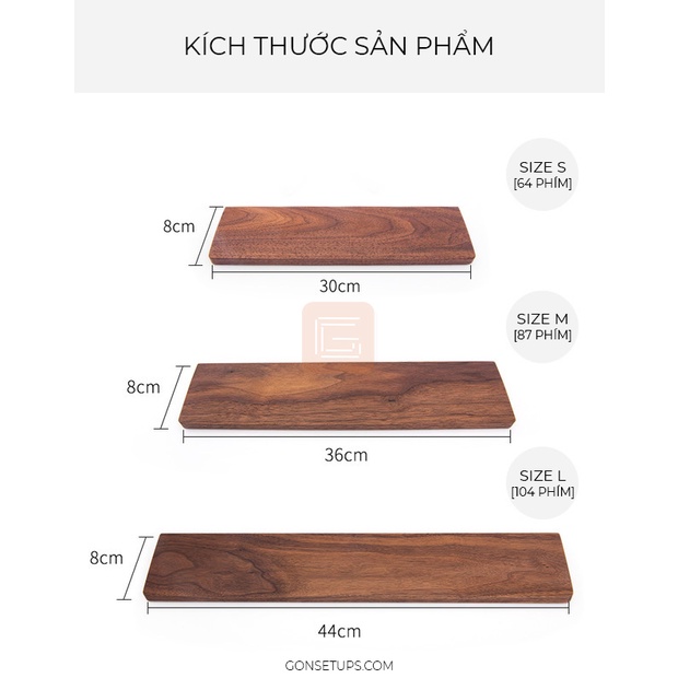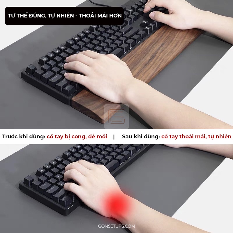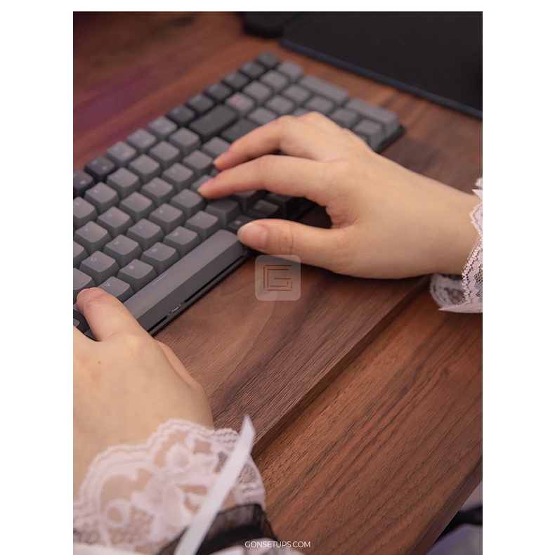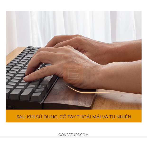 Kê tay bàn phím bằng gỗ cao cấp tự nhiên, giúp tạo cảm giác thoải mãi khi sử dụng GỌN SETUPS