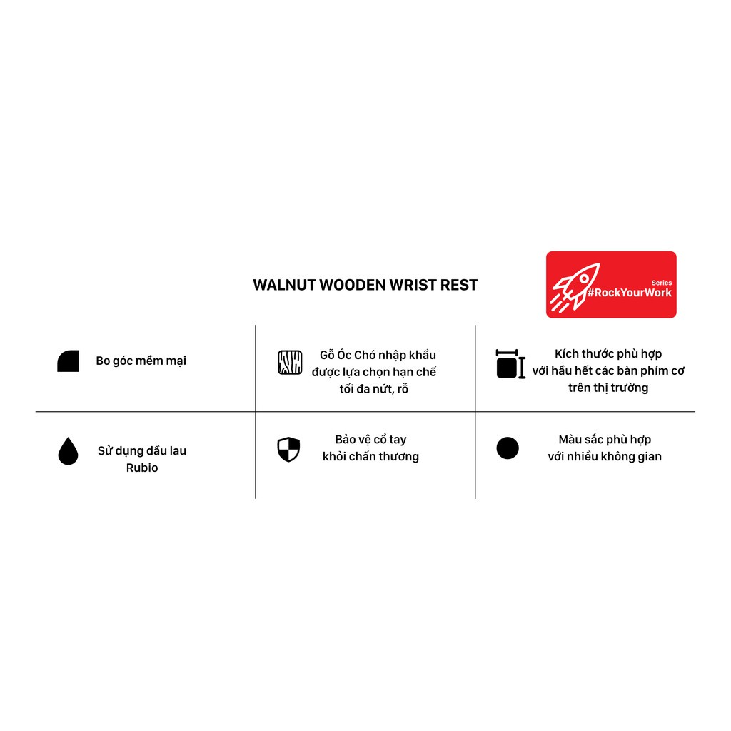Kê tay gỗ Óc Chó HyperWork cao cấp cho bàn phím cơ