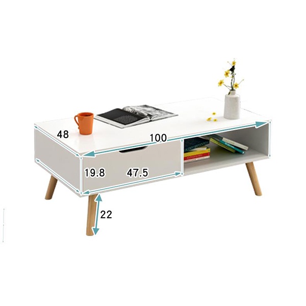 Bàn trà : kích thước Bàn : Rộng = 100cm . sâu = 48cm. cao = 42cm( chân bàn 22cm)
