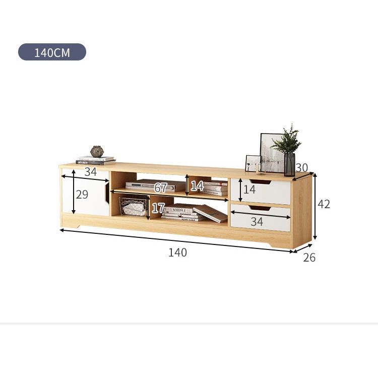 - 3 ngăn kéo: 140x30x42cm