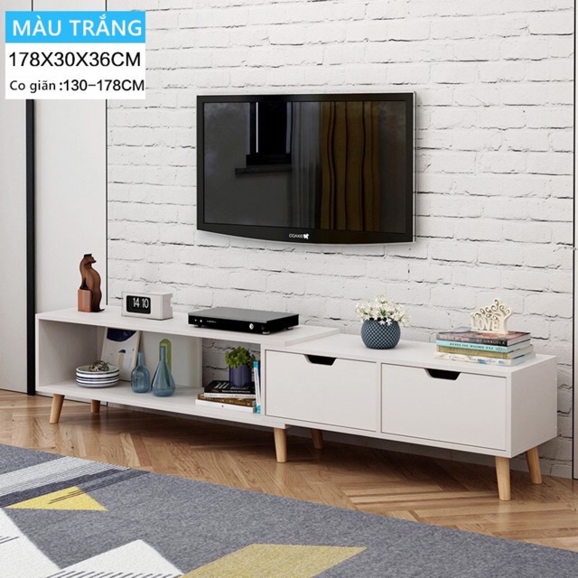 GIÁ KỆ TIVI RÚT GỌN, KHÔNG BAO GỒM BÀN TRÀRộng = 178cm . sâu = 30cm. cao = 37cm( đẩy vào còn rộng 130cm)