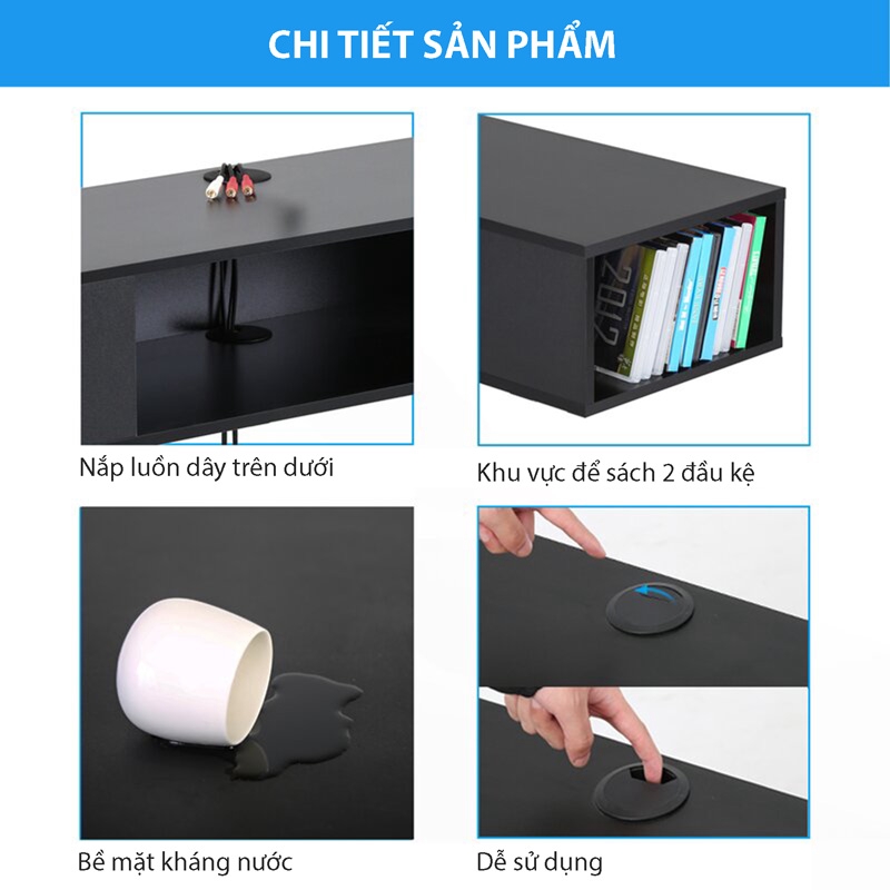 + Kích thước kệ 120x40x20 cm cho khả năng lưu trữ được DVD, thiết bị điện tử và rất nhiều sách với khả năng chịu lực lên đến 80kg.