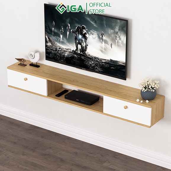 Giới thiệu Kệ Tivi Treo Tường IGA Tiết Kiệm Diện Tích 2 Ngăn Kéo Vân Gỗ Sồi Phong Cách The Nordic - GP110