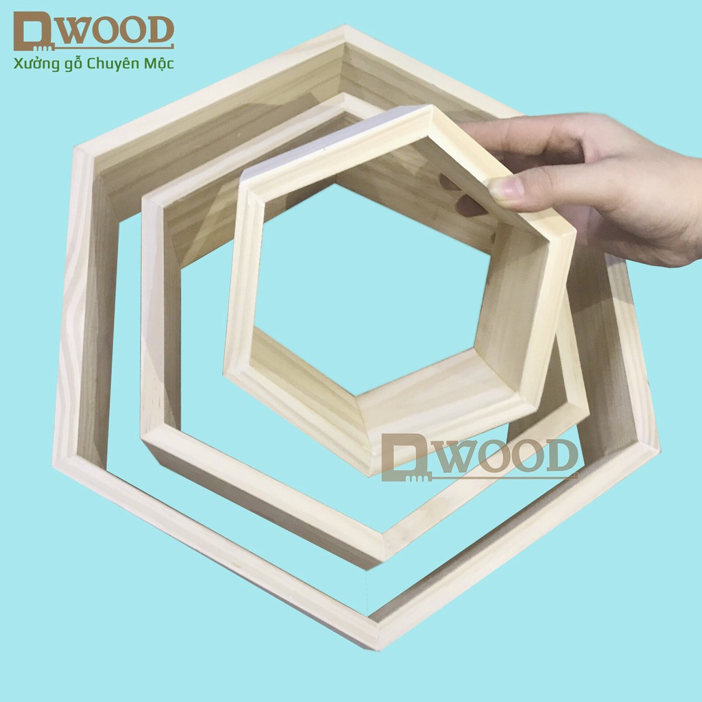 Nhà cửa & Đời sống > Nội thất > Kệ & Giá || Kệ tổ ong DWOOD treo tường hình lục giác gỗ thông- nhiều sizeCòn hàng