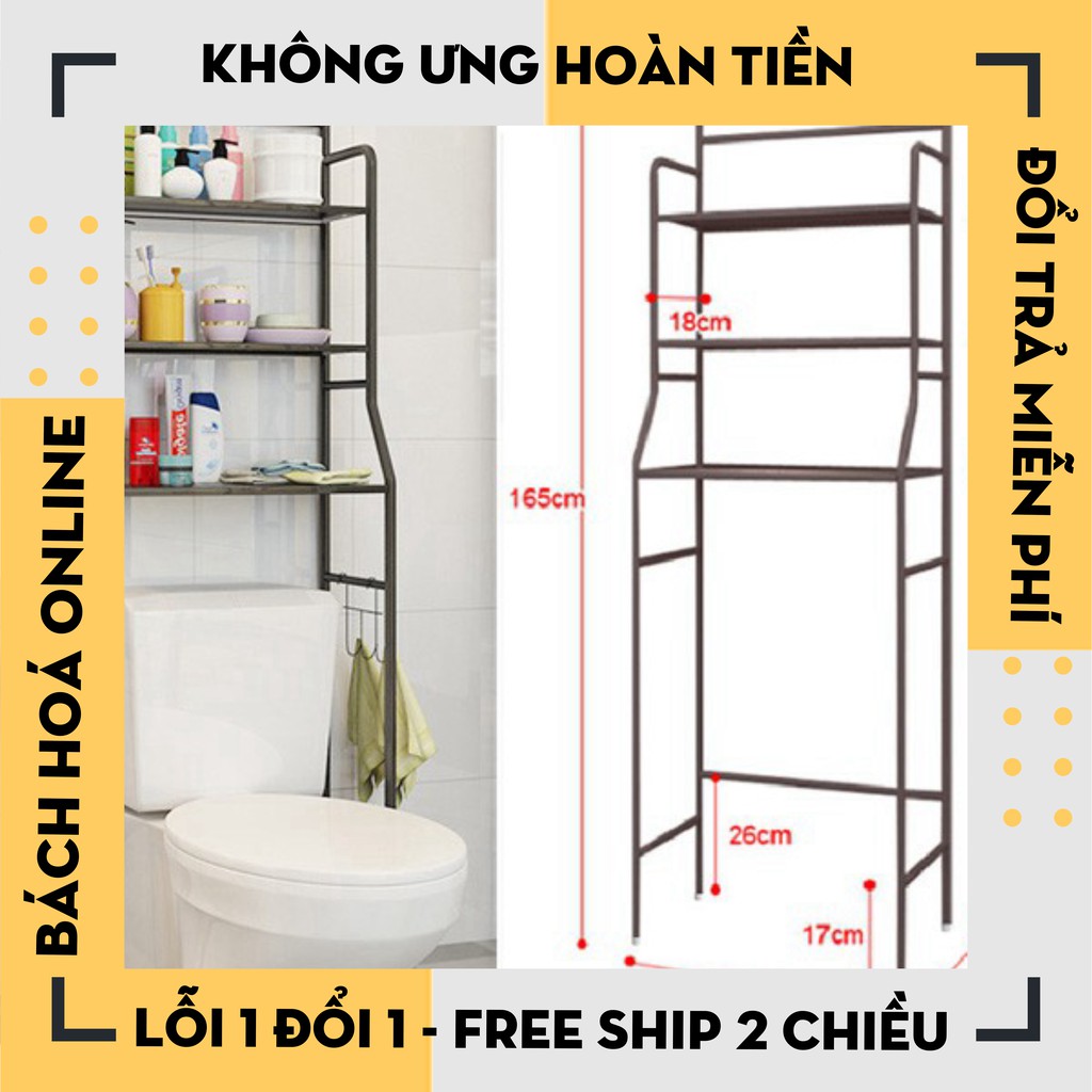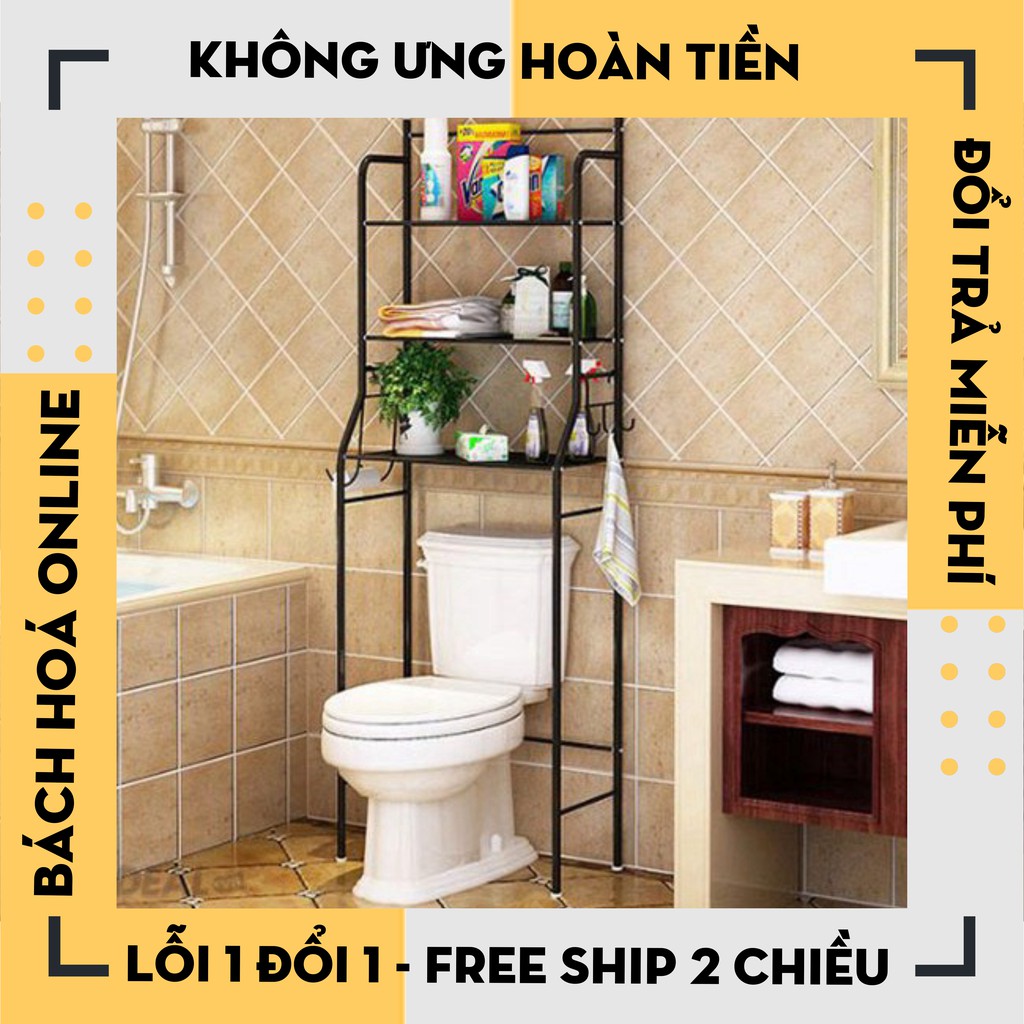- Sản phẩm gồm có 03 tầng móc treo giấy vệ sinh, thường được đặt phía sau bệ toilet tiết kiệm không gian, chứa khăn tắm, hóa mỹ phẩm, giấy...