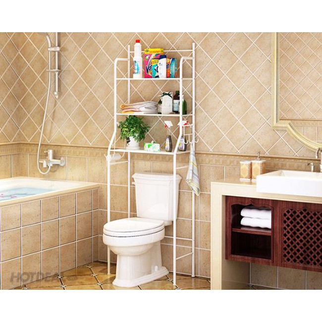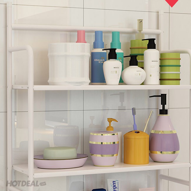 - Sản phẩm gồm có 03 tầng móc treo giấy vệ sinh, thường được đặt phía sau bệ toilet tiết kiệm không gian, chứa khăn tắm, hóa mỹ phẩm, giấy...